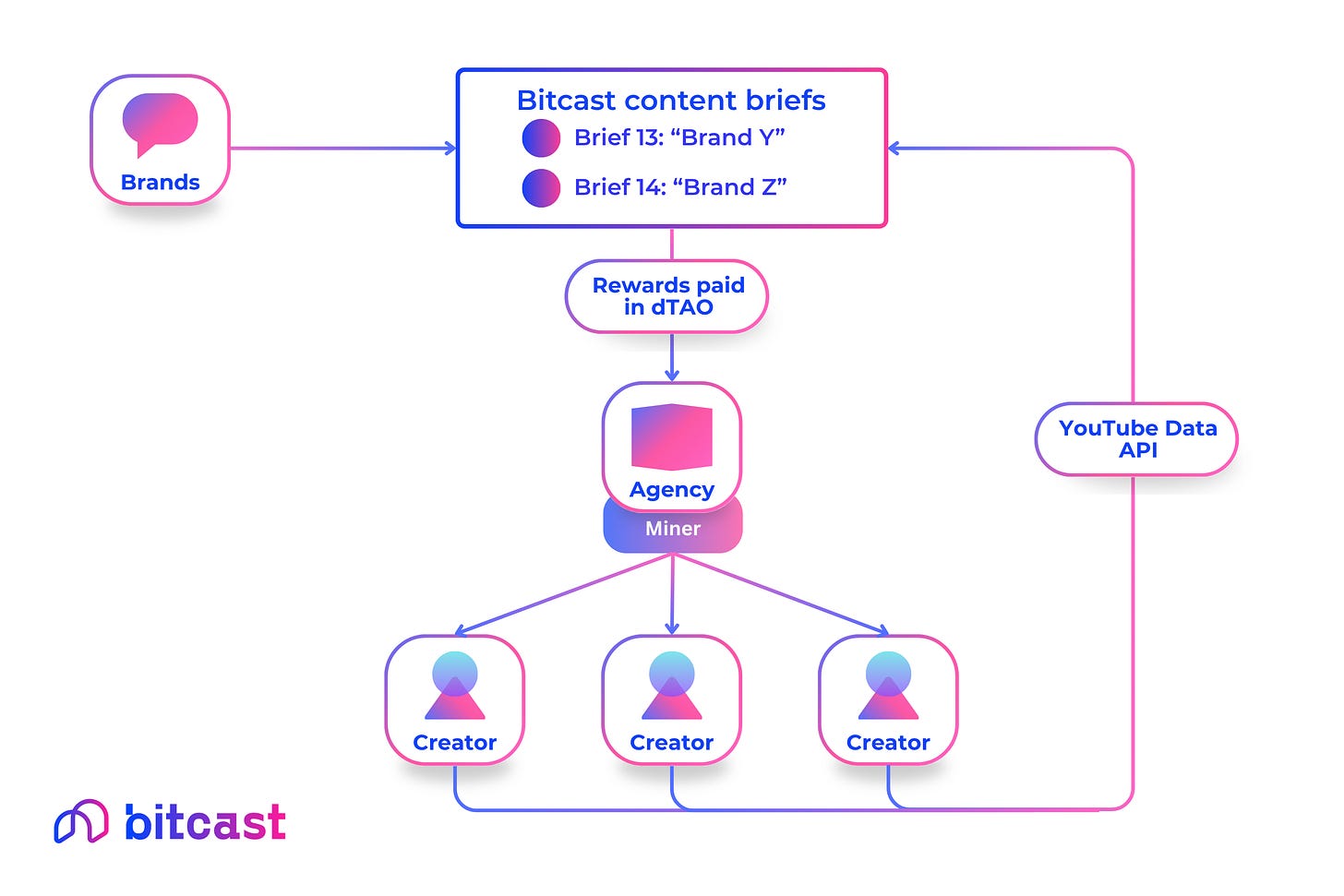 This open-source mining framework, powered by Bittensor, enables entirely new business models to be built on top of Bitcast, designed to onboard creators at scale while giving both agencies and creators reliable, regular and flexible revenue streams.