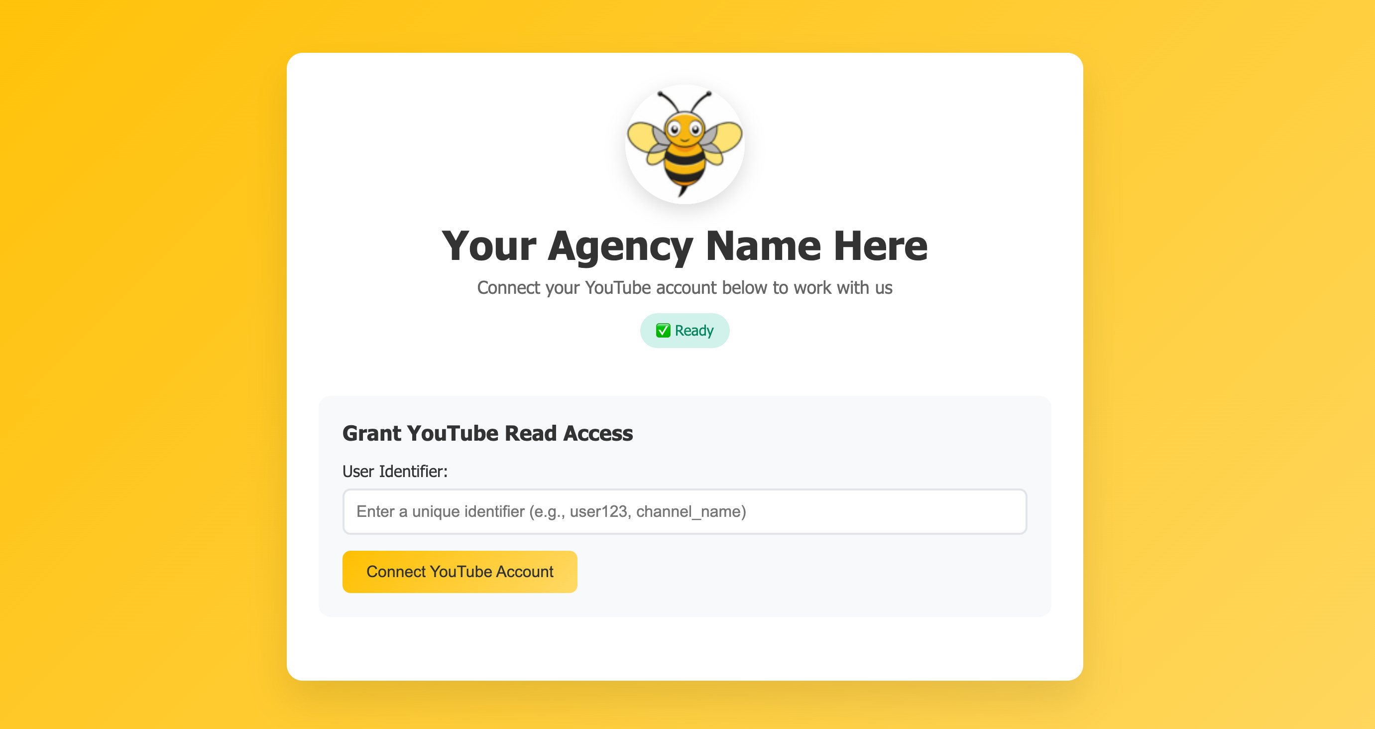 An example of the one-click creator onboarding portal that agencies can host on their site.
